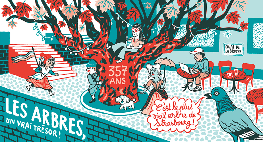 Illustration de la rubrique "En P'tit" destinée aux enfants, dans la nouvelle version de Strasbourg magazine.