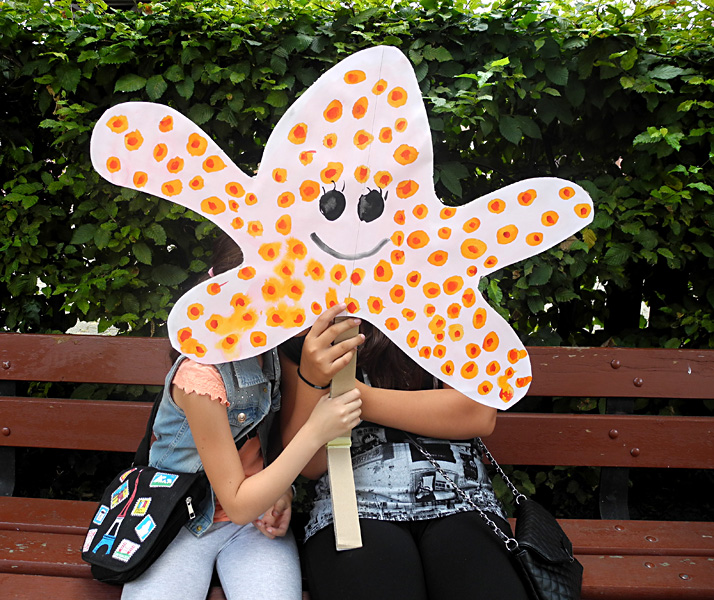 Copains comme poteaux ! / 6-11 ans / 2014: Pour égayer la ville et sa traversée, décoration du mobilier urbain avec du papier-mâché.