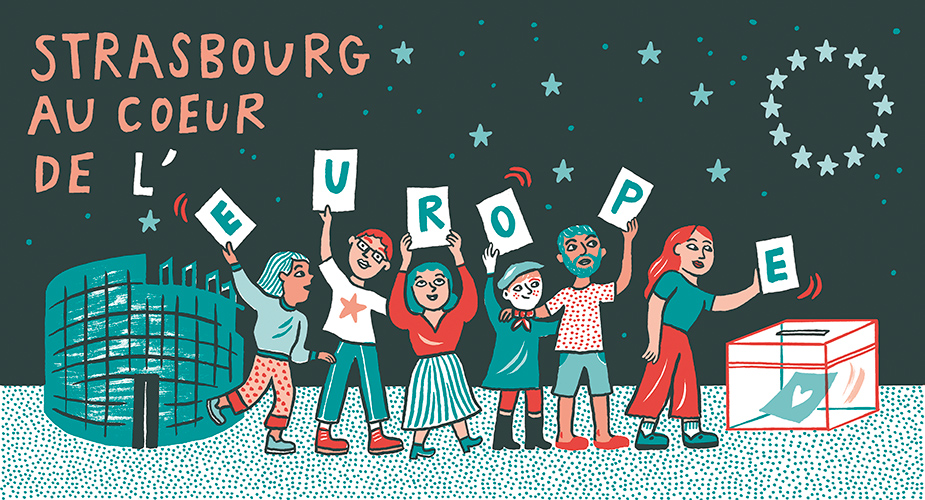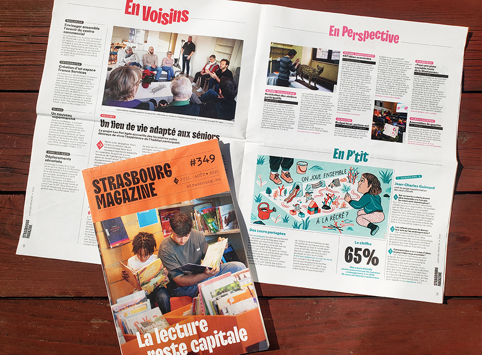 Illustration de la rubrique "En P'tit" destinée aux enfants, dans la nouvelle version de Strasbourg magazine.